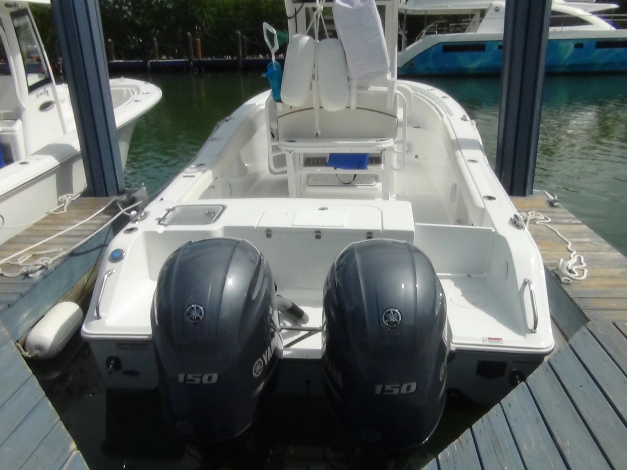 Our 26 ft. SeaHunt boat is a Deep-V offshore boat powered by twin 150 HP Yamaha 4-stroke motors.